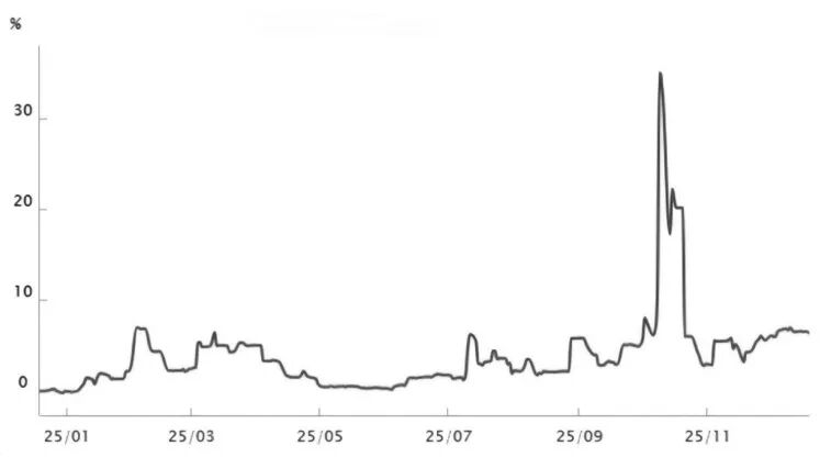 此外,美国的关税政策在2025年引发市场对白银实物供应的担忧,导致企业与投资者加速囤积白银,进一步加剧挤仓压力,放大了供需矛盾。资金面则呈现分散化特征,机构及高净值个人通过ETF或投行渠道囤积现货,持续消耗期货市场可用库存。白银现货租赁利率在今年10月一度超过35%,近期仍维持在6%左右的高位,远高于正常融资成本,也反映出实物白银出借意愿极低,现货市场供应紧张。