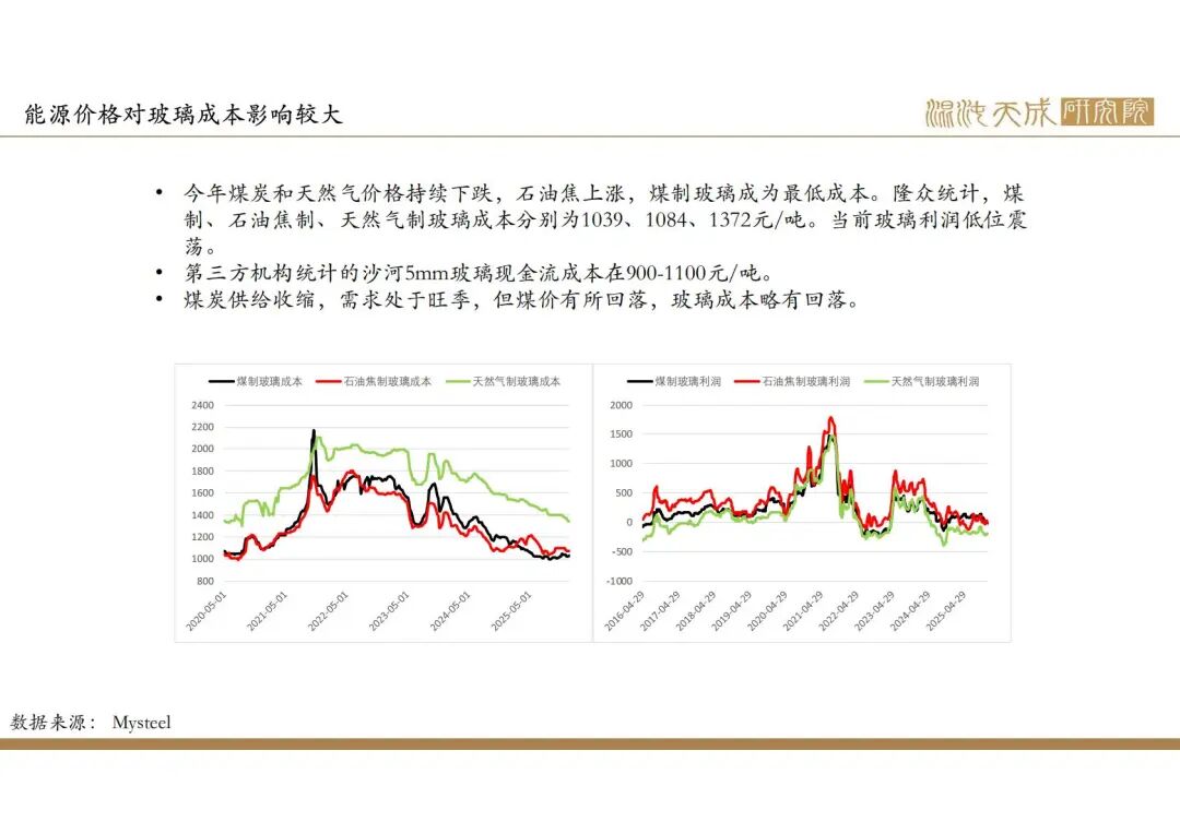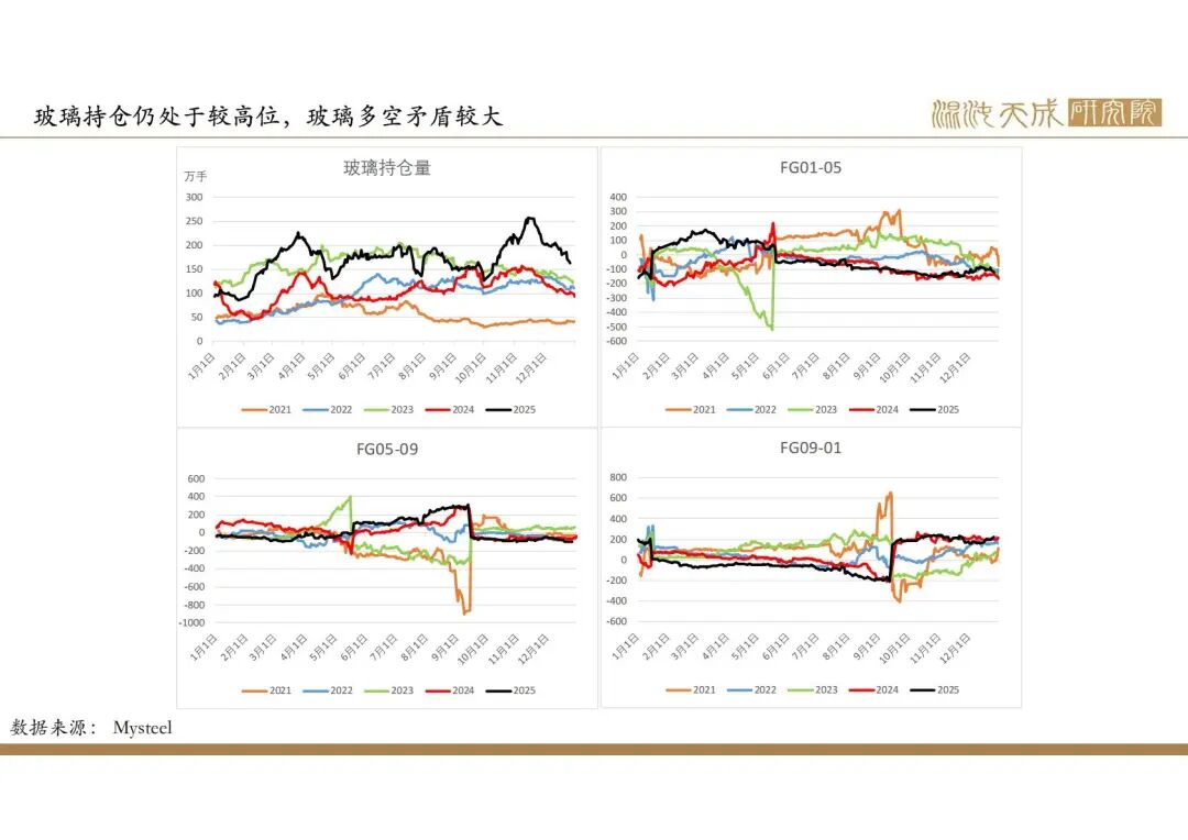 当前矛盾:后市将逐步进入玻璃需求淡季,玻璃供给和库存压力较大,价格跌至历史低位,部分厂家开始冷修,但市场情绪持续悲观,玻璃现货仍未止跌,盘面低位震荡。玻璃利润较差,价格继续下跌将会有更多厂家冷修,向下空间有限,政府再提反内卷,可能加速落后产能淘汰,将利好远期,建议逢低买入远月,关注玻璃厂家冷修落实情况和政策变化。部分厂家亏损严重,可能退出部分产能,关注产能变化。