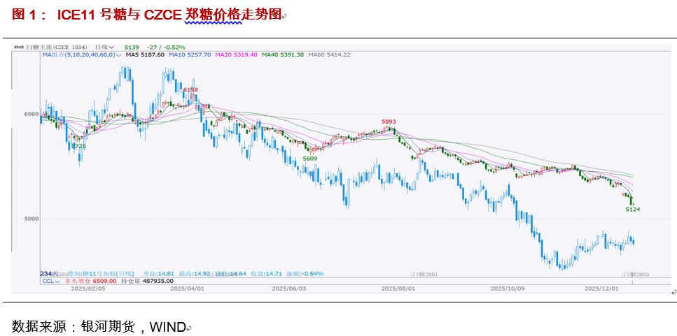 国内市场,目前是国内糖厂压榨高峰期,短期国内糖供应量较大,特别是1、2季度糖厂有销售压力,但是考虑目前价格处于历年期偏低且低于广西大部分地区的生产成本,且目前糖期货价格处于配额进口糖成本,因此预计短期糖可能会随着外糖继续小幅上移,预计空间不会太大。中长期来看,2026年国内甘蔗种植面积预计仍高,但是进口糖政策大概率会收紧,一旦糖价跌幅较大国内政策也可能托底,而目前糖价也处于历史性偏低位,所以2026年是白糖行情筑底的一年。上半年可能会处于底部震荡趋势,下半年大概率可能会迎来上涨趋势,但是同样和国际糖一样,如果宏观大宗上涨周期来临行情也可能会提前启动。