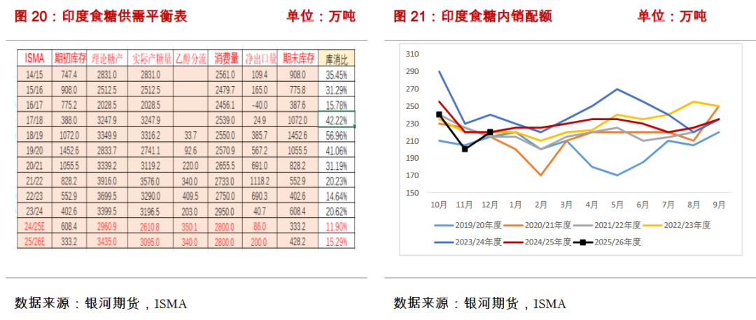 本榨季印度糖产同比大增,因此印度用于生产乙醇的量就比较重要,目前来看如果新榨季按照印度中央政府批准的150万吨的出口量预计印度糖对全球糖价影响相对有限。