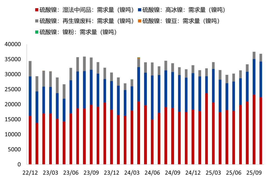 硫酸镍产量情况(分原料)