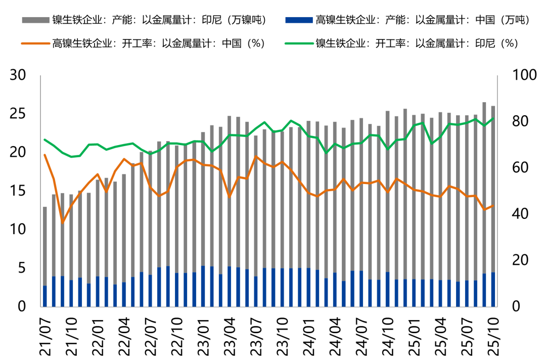 中国与印尼镍铁产能与开工率