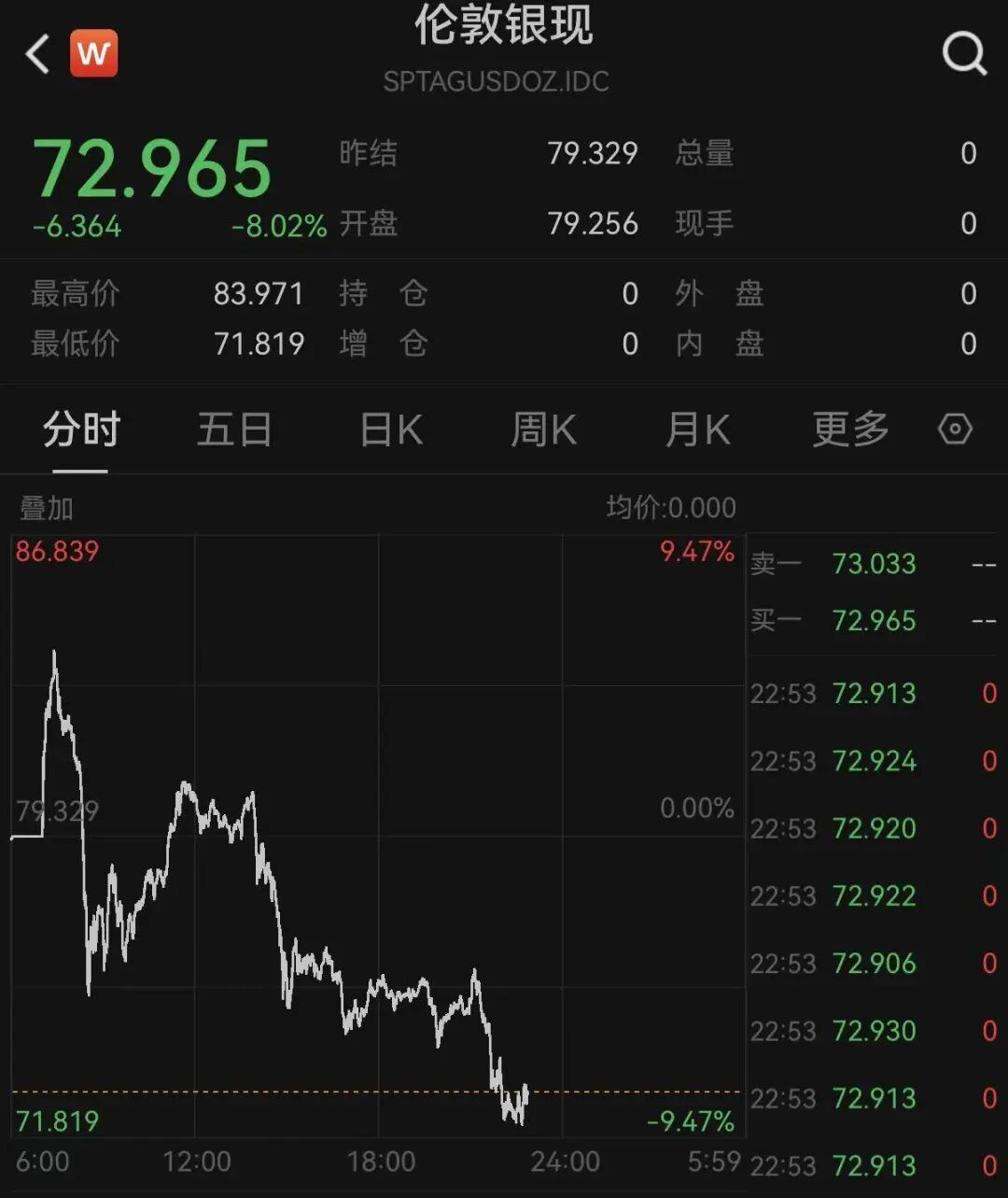 值得注意的仍是黄金与白银,晚间,现货白银暴跌超8.7%,已跌至72美元附近,而黄金也被带崩,截至发稿暴跌超4%。