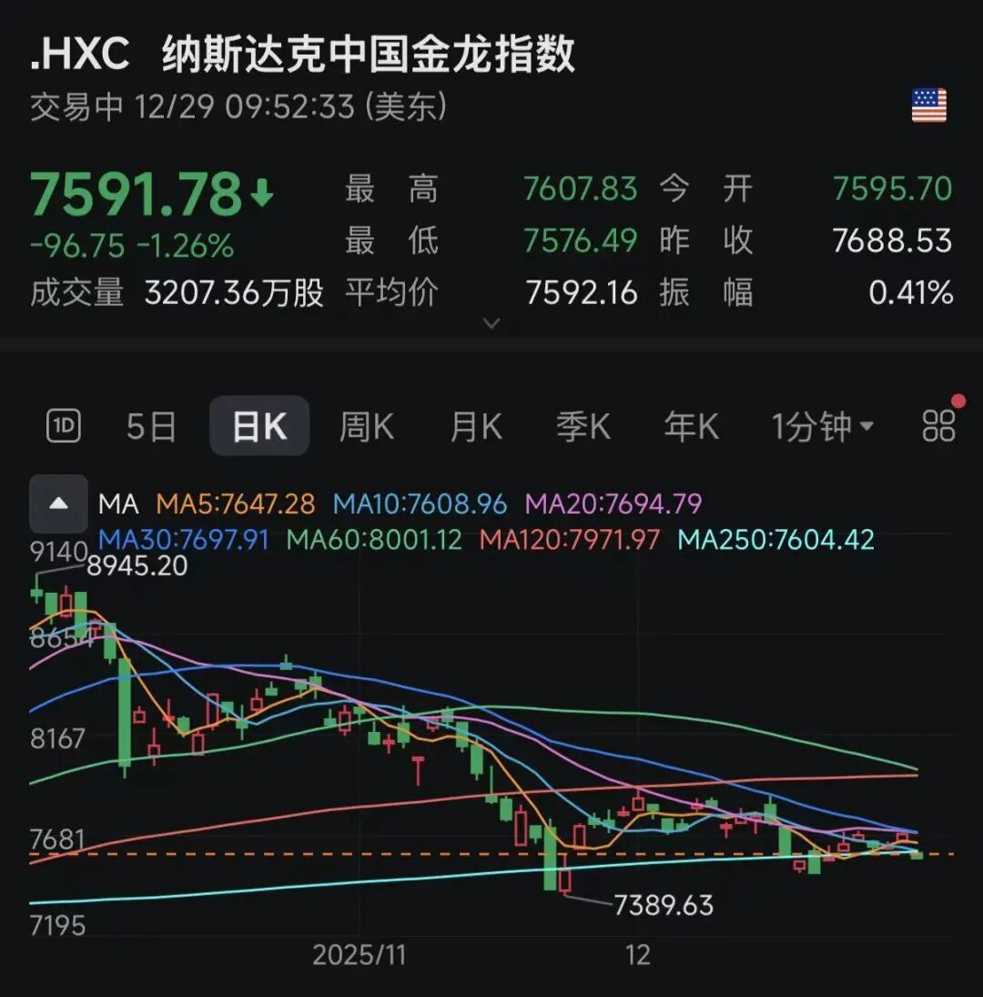 中概股方面,纳斯达克中国金龙指数跌超1%,叮咚买菜跌超6%,阿里巴巴跌近3%,理想汽车与小鹏汽车均跌超2%。