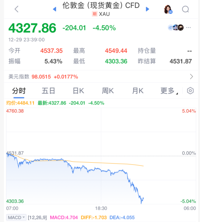 白银盘中暴跌超10%,创下自2021年以来最大单日盘中跌幅。技术指标显示,这波上涨可能“跑得太快、太猛”。黄金日内暴跌200美元,下挫4.5%,跌破每盎司4329美元,从上周创下的历史新高回撤,市场同样认为黄金也处于“超买”状态。