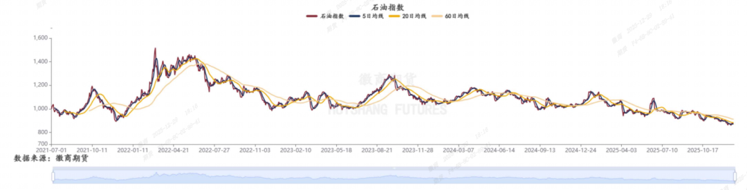 石油指数上涨0.16%。宏观方面,美国第三季度GDP环比年率4.3%,通胀数据走弱,但特朗普24日重申“不同意我观点的人永无资格任美联储主席”,市场对美国的货币政策依旧宽松看待。俄乌方面,24日莫斯科称乌方“20点和平方案”仅为谈判起点,核心条款缺失,新一轮接触或延至明春;白宫同日命令美军未来两个月“全力封锁”委受制裁石油;以色列24日指伊朗扩大弹道导弹产能,拟向特朗普汇报再袭选项,23日伊朗举行导弹演习。OPEC+月报确认11月小幅增产但维持今明两年需求增速预测不变;美国12月20日当周石油钻井总数406口(前值414口),连降三周。EIA最新单周汽油表需环比增加,馏分油略减;炼厂开工率续升0.3个百分点至94.8%。库存端,EIA(12月17日)商业原油库存降127.4万桶(较五年均值低约4%),战略储备增24.9万桶,汽油、馏分油分别累库480.8万、171.2万桶,丙烷-丙烯继续去库。宏观软着陆预期提供需求底仓,地缘封锁与钻井下滑同步压缩供应溢价,短期原油维持反弹节奏,上方关注前高压力。