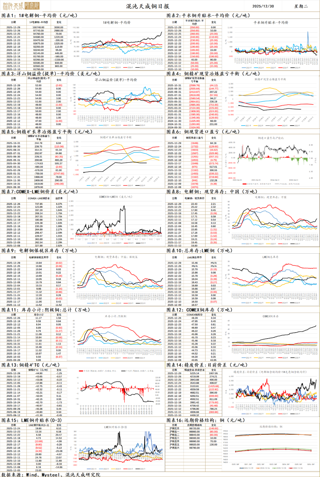 铜价仍与宏观密切相关,即使长期仍以向上作为主要方向,但此前较为激进的行情本就跟随贵金属以及情绪催化,年底流动性弱势以及情绪面回调引发的连锁反应,叠加此轮高价引发的下游负反馈共同形成短线级别的大幅回调。节前市场仍可能以降低波动率和谨慎止盈主导,市场在经历日内暴跌后,短期可能会形成震荡调整态势。