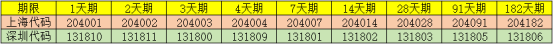 交易品种:沪深两市均有 1 天期、2 天期、3 天期、4 天期、7 天期、14 天期、28 天期、91 天期和 182 天期等 9 个交易品种供投资者选择。上交所的回购品种名称以 “GC” 开头,深交所的则以 “R” 开头。