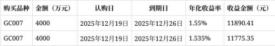 公司此前已于12月19日实施两笔7天期国债逆回购操作,合计金额8000万元,相关资金及收益已全部收回。具体交易情况如下: