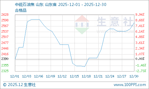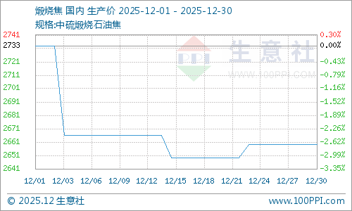 据生意社商品分析系统显示,12月份地炼石油焦行情震荡上涨,国内主要地炼厂家石油焦中硫产品主流均价12月30日为2585.75元/吨,较12月1日为2390.75元/吨,整体上涨8.16%。
