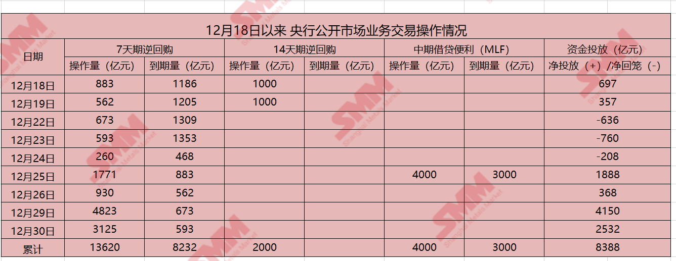 护航跨年流动性!“央妈”9个交易日累计净投放8838亿【SMM专题】