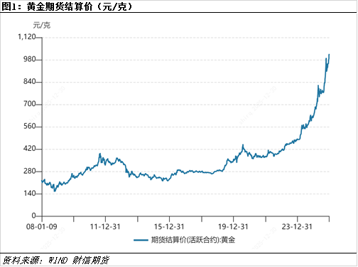 2025年黄金价格延续上行趋势,沪金从年初的不到630元/克,至年底最高已经突破了1020元/克,全年涨幅超过60%。我们看到,尽管黄金价格延续了2024年的高光表现,但驱动略有不同。