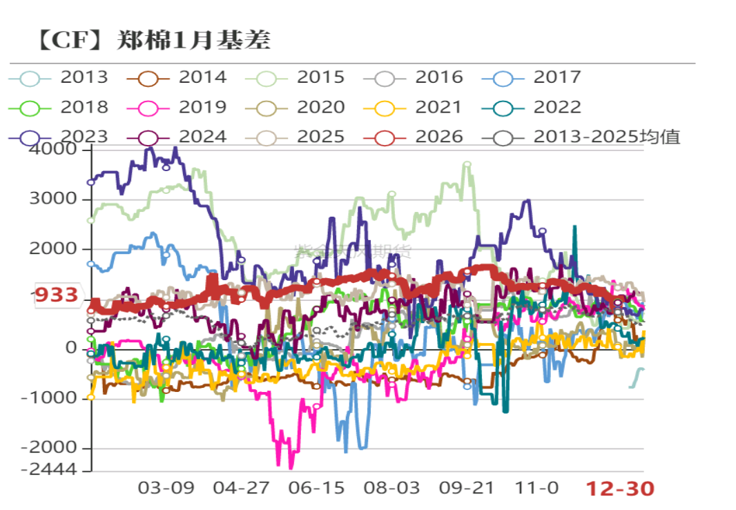 当然,从25/26年新棉预售的基差看,2026年继续做多基差的空间已经在预售里面体现了一部分,因此剩下的空间有限,很难再复刻2025的行情。
