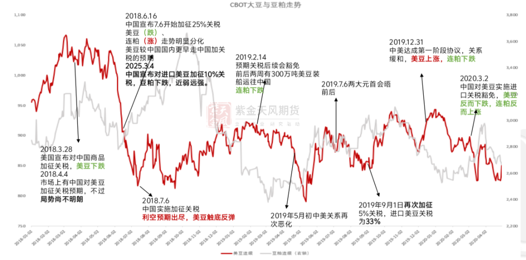 反复性、难以预测性、短期波动较高,长期持续性有限的特点:因贸易摩擦事件本身持续时间就有限,后续转入商谈阶段,此外中美双方也会出台对应的措施,如中(粮油抛储、扩大进口来源地、减少出口)美(出台补贴政策、寻找新的出口方、政府购买、出口支持)。