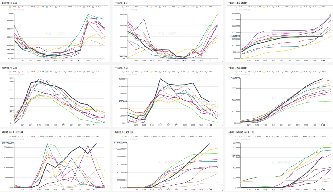 (3)年中,中国连续多月未采购一粒美豆,美豆政府停摆,市场短期缺乏指引,巴西贴水强劲,北美-南美贴水差甚至深度倒挂,三季度阶段性过山车行情明显,上旬交易远期大豆供应担忧&美农意外下调美豆面积,下旬回归中美磋商&阿根廷豆粕进口消息&国内弱现实&加拿大菜籽反倾销一案初裁结论。
