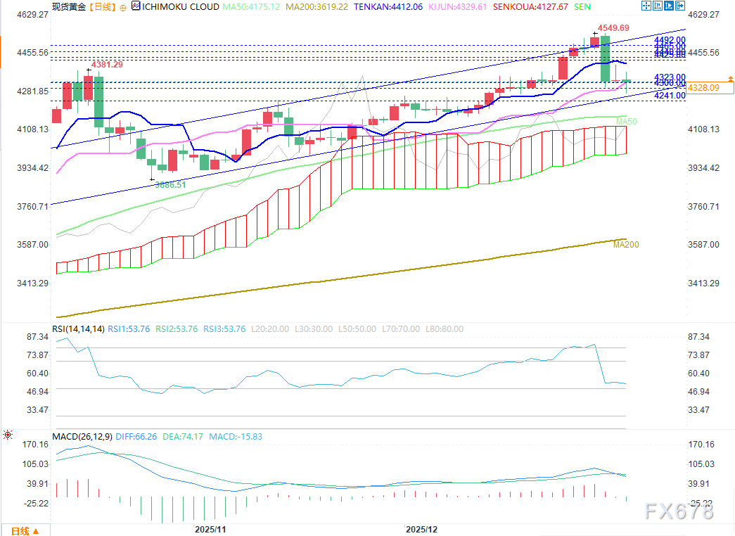 日图技术指标整体维持看涨格局:14日动量指标仍处于正值区间,多数移动平均线也呈多头排列,这均对金价上行的观点构成支撑。