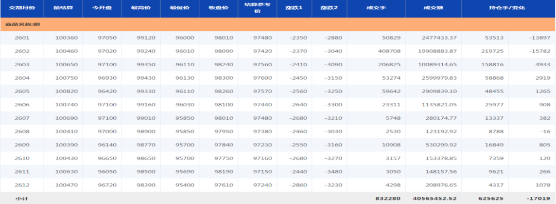 来源:上期所,价格:元/吨,交易单位:5吨/手,成交量、持仓量及变化单位为手单边计算;成交额单位万元,单边计算