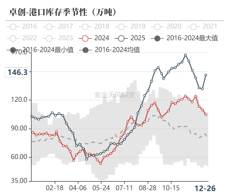 伊以地缘冲突以后,伊朗甲醇装置快速回归且装船量明显增加,国内进口增量明显,港口库存持续累库至历史最高水平,导致港口价格压力巨大,甲醇价格持续下跌。