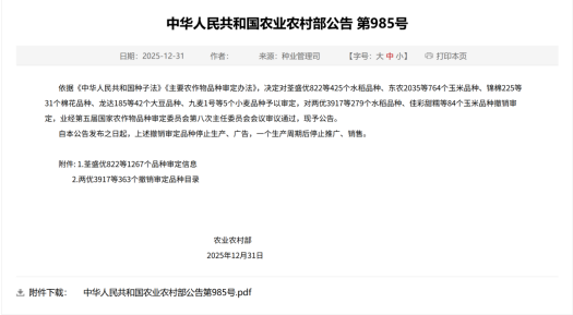 近日,农业农村部发布第985号公告,第五届国家农作物品种审定委员会第八次主任委员会会议审定通过了764个玉米品种,我市博信农业科技有限公司自主选育的玉米新品种“桓丰119”成功通过审定,成为该公司首个、我市第二个国审玉米品种,这标志着我市在玉米育种创新方面取得又一重大突破。