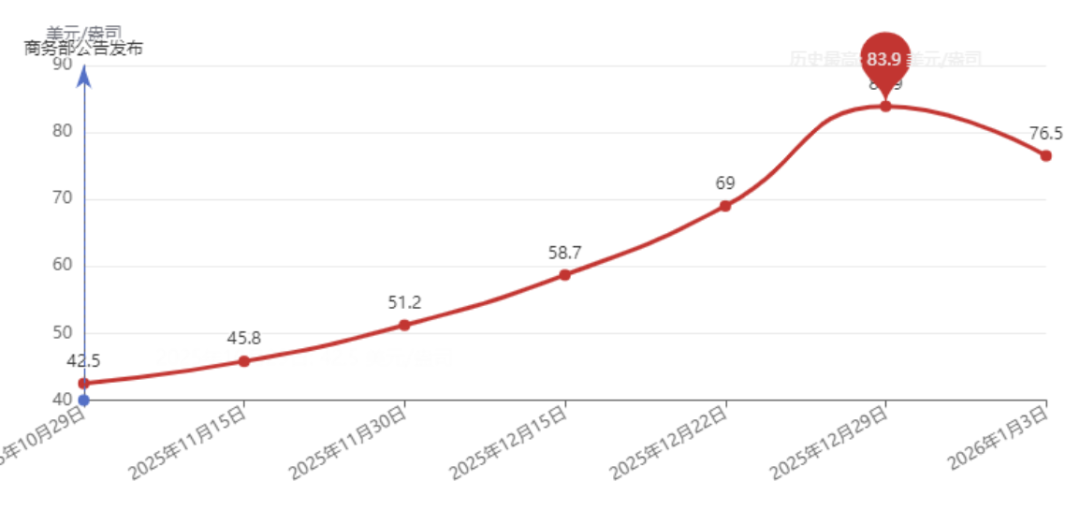 引发热议的政策文本,是商务部于2025年10月29日发布的《2026年货物出口配额总量》公告,其中明确自2026年1月1日起,“继续对白银暂停出口配额管理,实行出口许可证管理”。