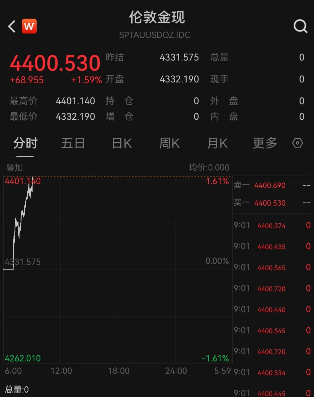 再次站上4400美元