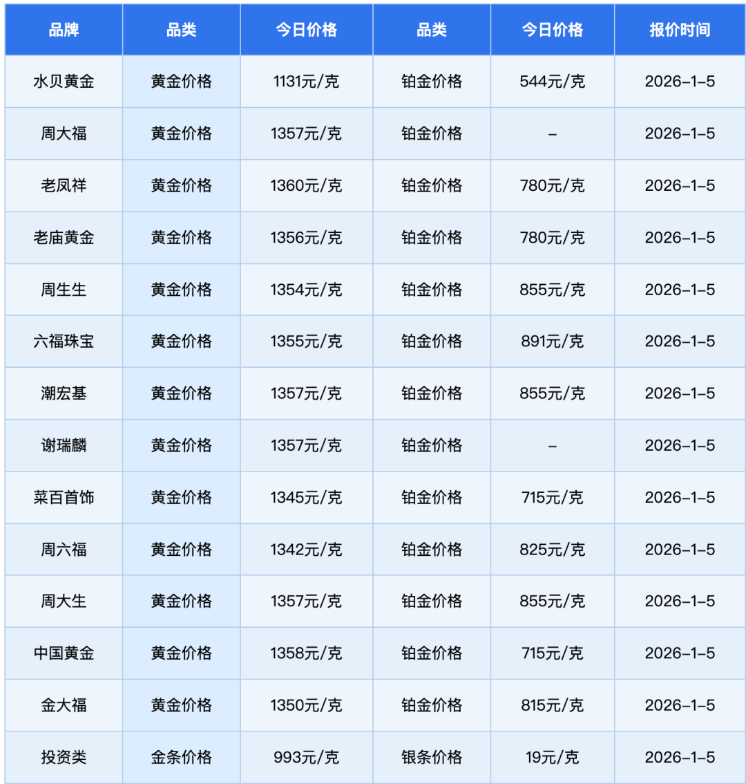 老凤祥报1360元/克
