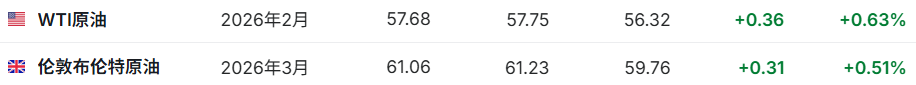3. 截至发稿,WTI原油涨0.63%,报57.68美元/桶。布伦特原油涨0.51%,报61.06美元/桶。