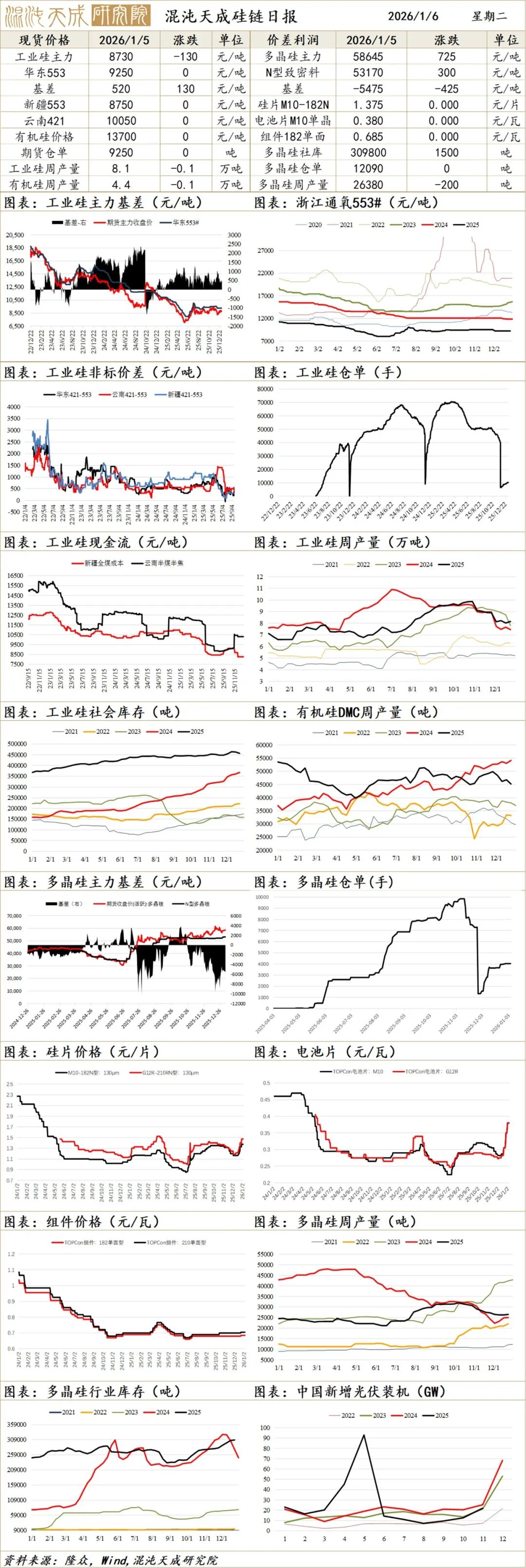 2、供需边际改善,短期转平衡。西南枯水期兑现产量下降,西北保持高位,假期核实合盛西补因环保减产,预计影响1.5万吨/月量,若多晶硅不大幅减量情况下,工业硅有转平衡预期。