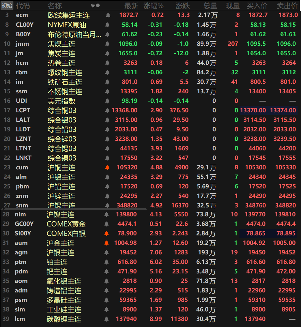 美元下跌金属集体拉涨沪铜沪镍涨逾4%碳酸锂涨停沪银涨超7%【SMM日评】
