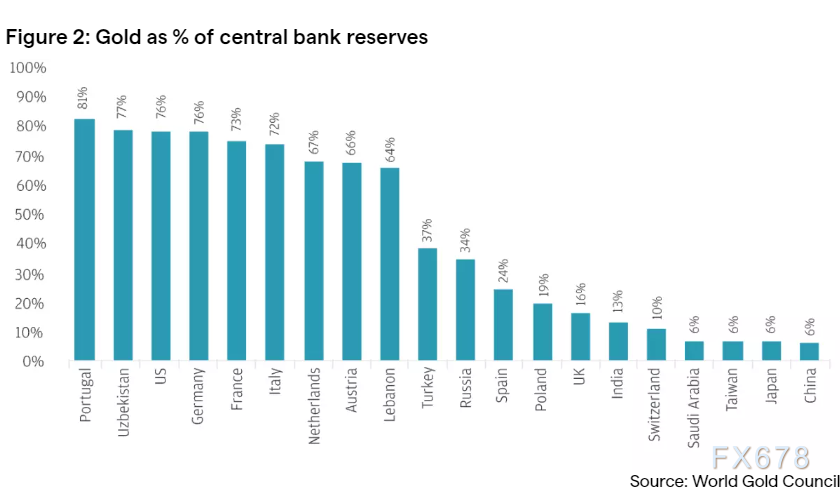 目前多个经济体的黄金储备占总外汇储备比例已超50%,而中国、日本等主要经济体的这一比例仍处于个位数水平,这种全球储备配置的失衡状态,意味着未来仍存在巨额资产重新配置空间。
