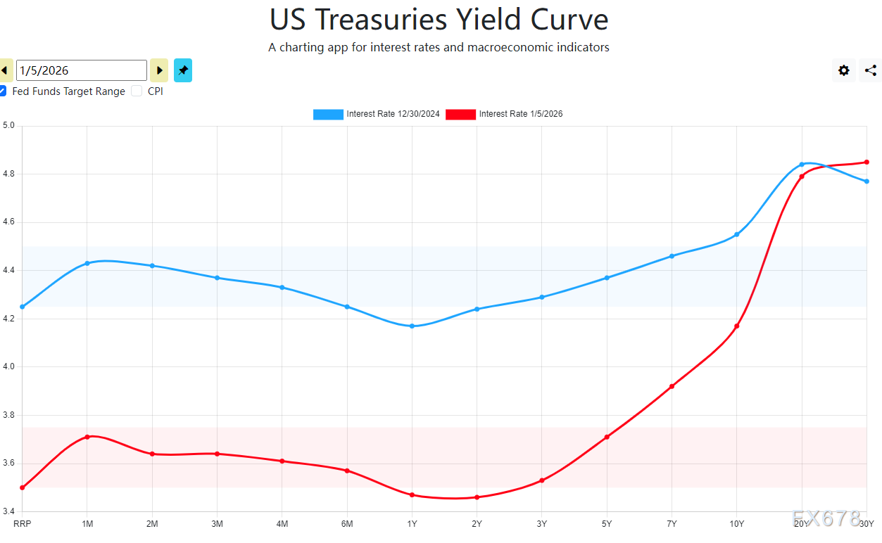 2025年的市场表现已清晰印证黄金对宏观变量的敏感性:6-12月美国国债收益率短端与长端的期现溢价不断拉大同时实际收益率不断下探,黄金价格同步飙升至历史新高,这种联动关系仍是2026年驱动黄金走势的核心主线之一,需作为交易决策的关键参考。