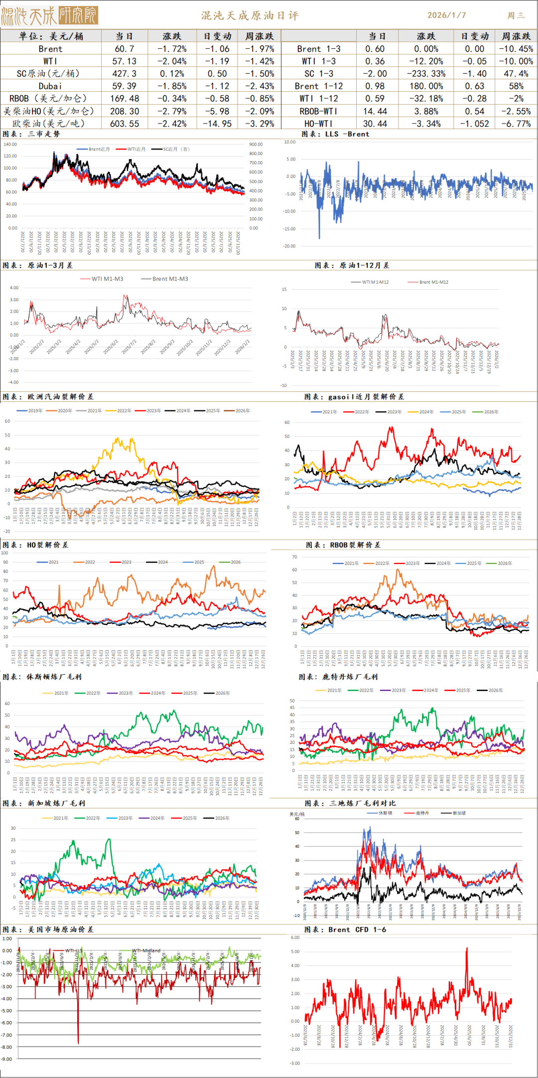 供应端:OPEC+在新一轮会议上维持产量不变,主要干扰仍在地缘。美国攻击委内瑞拉后,特朗普促国内石油公司帮助委内瑞拉增产,并宣布将获得委内瑞拉3000-5000万桶受制裁原油将在市场出售。伊朗国内局势混乱,且面临美国以色列威胁,因此地缘冲突风险仍在。