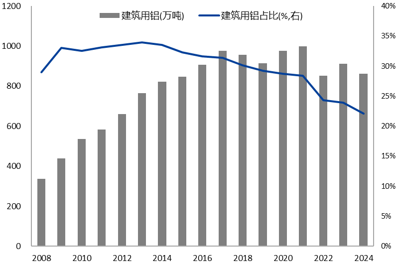 建筑用铝占比逐年下降