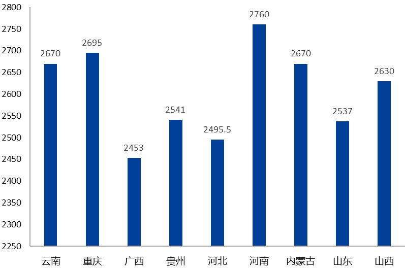 氧化铝现金成本(截至11月末)