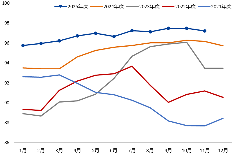 受到储采比、政策等因素的影响,国内与全球铝土矿供给仍呈现外松内紧的格局。根据钢联数据,2025年1-11月国内铝土矿产量6134.987万吨,较去年同期小幅增长2.55%,月度产量整体平稳,但环保限产等扰动因素难以消退,根据《铝产业高质量发展实施方案(2025—2027年)》政策要求,“加快推动国内铝土矿资源增储上产……力争国内铝土矿资源量增长3%—5%”,但同时《有色金属行业稳增长工作方案(2025—2026年)》提及,“支持有色金属企业与国外矿企、运输企业签订长期采购协议”。因此整体来看,国内对铝土矿资源限制仍将持续,对进口矿高依赖度将延续。