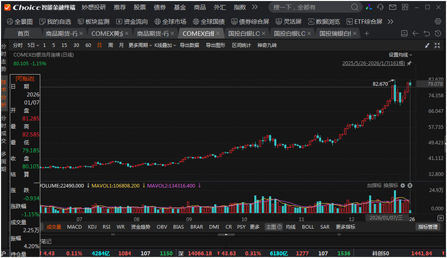 上证报中国证券网讯 (记者朱妍)国投白银LOF公告显示,截至1月6日,该基金二级市场的收盘价为2.598元,明显高于1月5日该基金2.0497元的份额单位净值,场内溢价重回20%以上。基金公司提示,投资者如果盲目投资于高溢价率的基金份额,可能面临较大损失。因此,国投白银LOF自1月7日开市起至当日10:30停牌,这是时隔三个交易日后,该基金的再次停牌。数据显示,截至1月7日10点07分,COMEX白银期货价格下跌1.15%,此前已“三连阳”。
