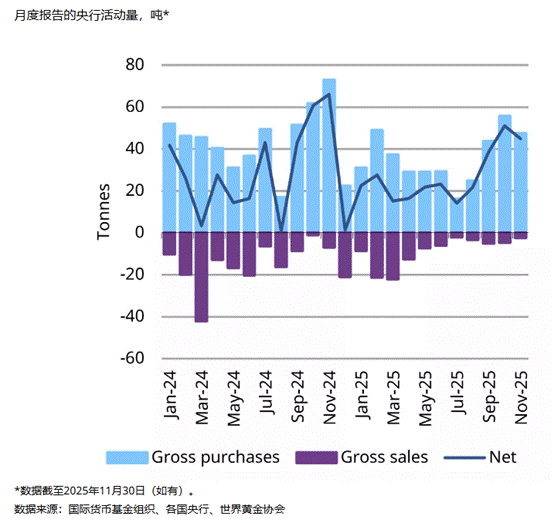 世界黄金协会最新数据显示,11月份各国央行对黄金的需求依然强劲。净购入量达45吨,虽然较10月份略有下降,但与今年前几个月相比,购入量仍处于较高水平。年初至今累计购入量接近297吨,新兴市场央行今年继续保持大规模黄金购入。摩根士丹利预计,到今年第四季度,金价可能飙升至每盎司4,800美元,理由是利率下降、美联储领导层变动以及央行和基金购买力度强劲。