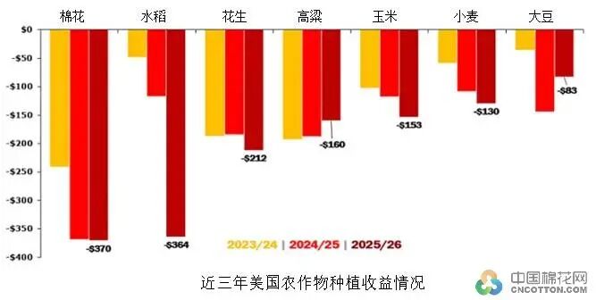 中国棉花网专讯:据外电分析,棉花价格自2022年达到峰值后开始大幅下跌。过去三年,美国玉米、大豆、小麦、高粱、花生、水稻和棉花等作物生产连年亏损。