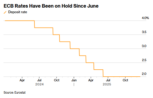 过去半年多以来,欧元区物价涨幅始终围绕2%的目标水平波动,这也让欧洲央行得以自去年6月起便维持基准利率不变。经济学家和投资者普遍认为,短期内欧洲央行不会再进一步调整利率。