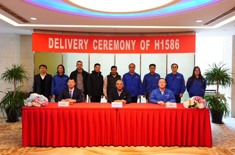 交船开门红外高桥造船15.8万吨原油轮“海洋双子星”轮签字交付