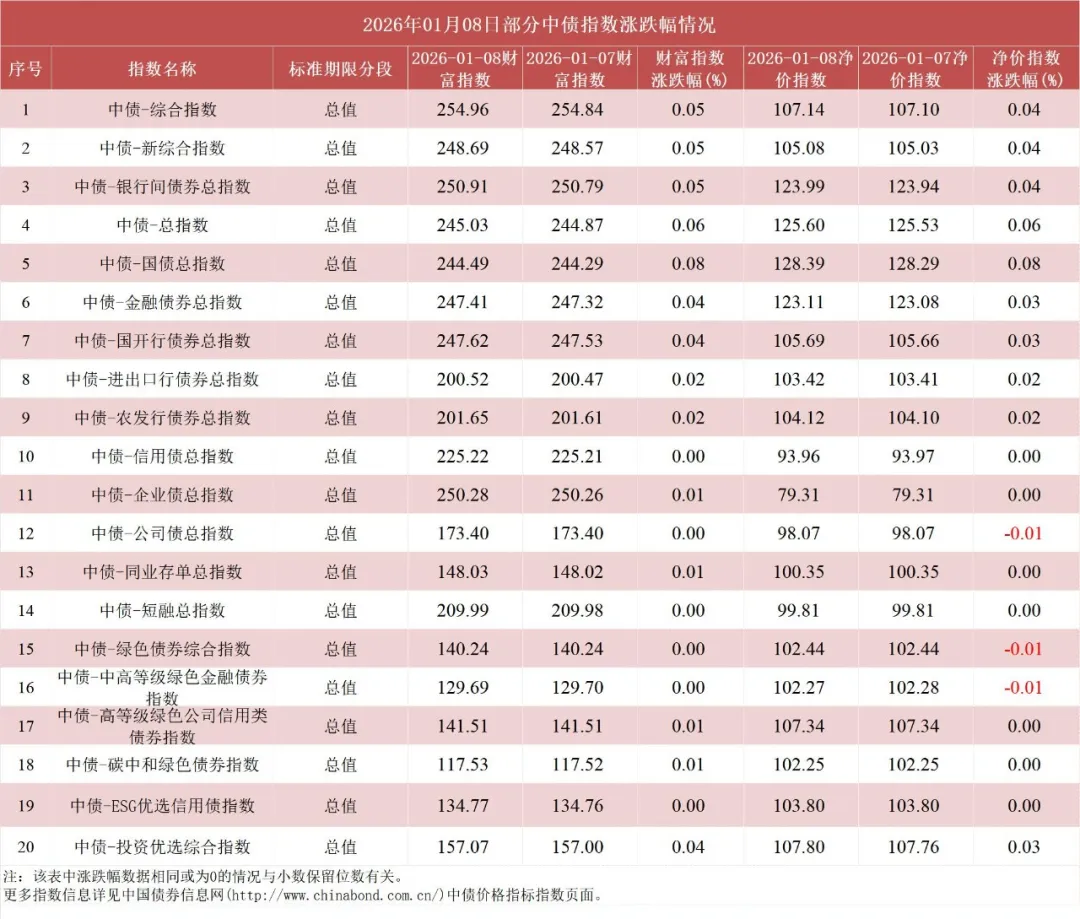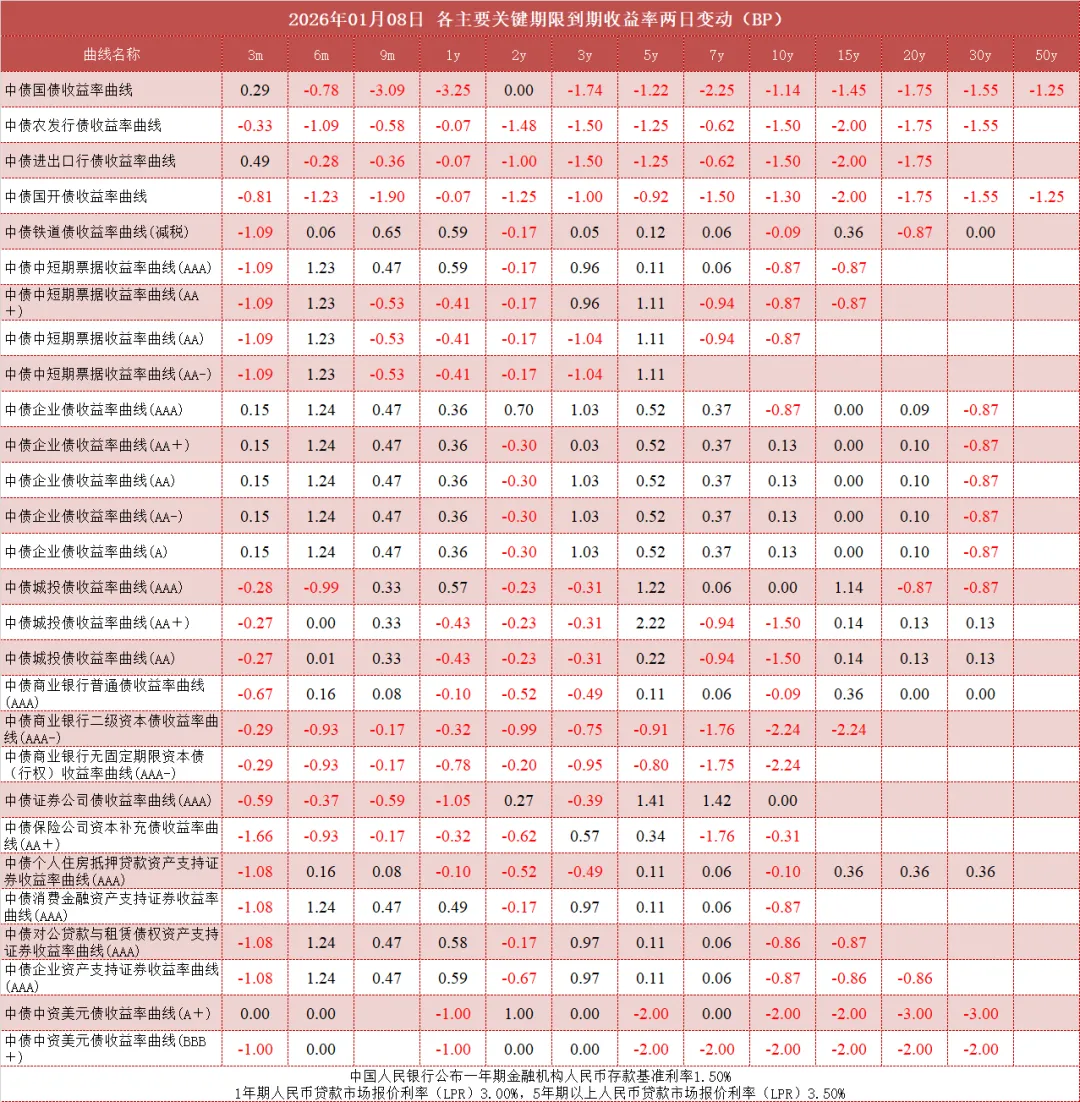 债市值言:中债收益率曲线和指数日评2026年1月8日
