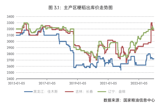 从历年生产情况看,农业政策、种植结构调整、科技进步、气候等宏观因素对粳稻种植面积和产量影响均较大,相应可引起粳米供应变动。2013 年以来,我国粳米需求增速放缓,而粳稻产量逐年增加粳稻米市场供大于求状况逐渐显现。此外,从中微观角度来看,稻谷的库存变化、储备稻谷的轮换、托市量出库销售的数量和价格也影响稻谷的供给量从而影响大米的供应量。