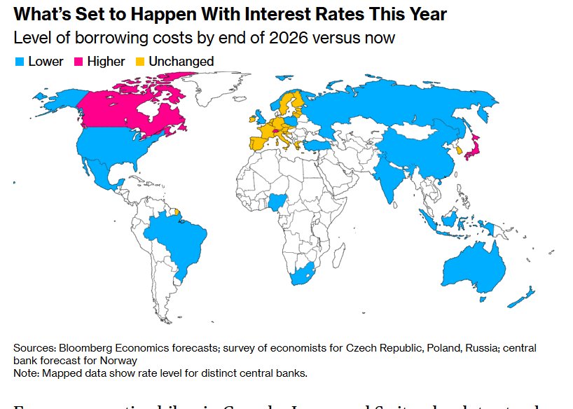 随着美国总统特朗普在重返白宫的第二年大举推进财政政策与贸易格局大变动,以及频繁威胁美联储货币政策独立性进而不断要求美联储大举降息。全球央行利率路径开始出现分化,全球各大央行在应对由特朗普领导下美国财政或者货币政策引发的经济不确定性和剧烈市场波动时,各自采取截然不同的货币政策来推动经济增长,而不是一味跟随美联储货币政策变动。