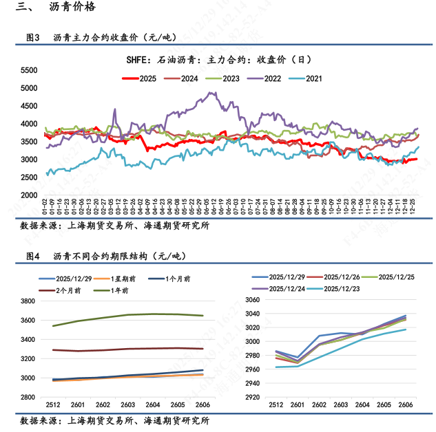 【1】盘面表现:BU 2602合约日内早盘大幅跌落后,又被多头资金拉升起来,最终维持区间震荡。收盘3008,涨幅0.23%,盘中最高触及3016,最低2967,近7天累计+1.9%。次月合约2603涨幅0.17%,合约期限仍呈现近低远高的Contango结构,但相比11月份已经有所收窄。