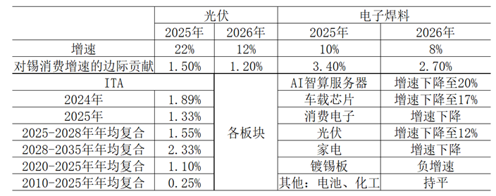 表:2026年涉锡消费增速预期