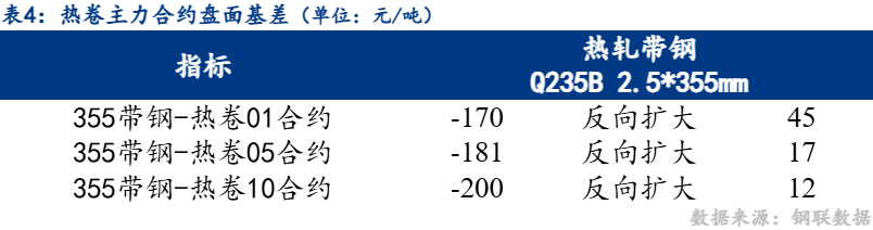 12日市场热卷05合约与唐山355带钢价差反向扩大17元/吨,热卷10合约与唐山355带钢价差反向扩大12元/吨。