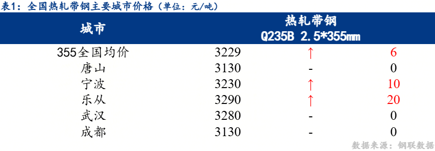 12日热轧带钢全国主要城市价格稳中趋强,截至发稿时2.5*355mm热轧带钢均价3229元/吨,较昨上涨6元/吨,其中2.5*355mm主要城市唐山3130元/吨,宁波3230元/吨,乐从3290元/吨。