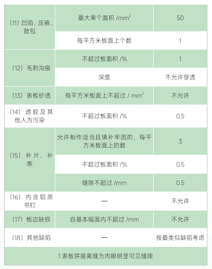 双面砂光、面板和背板具体要求如下: