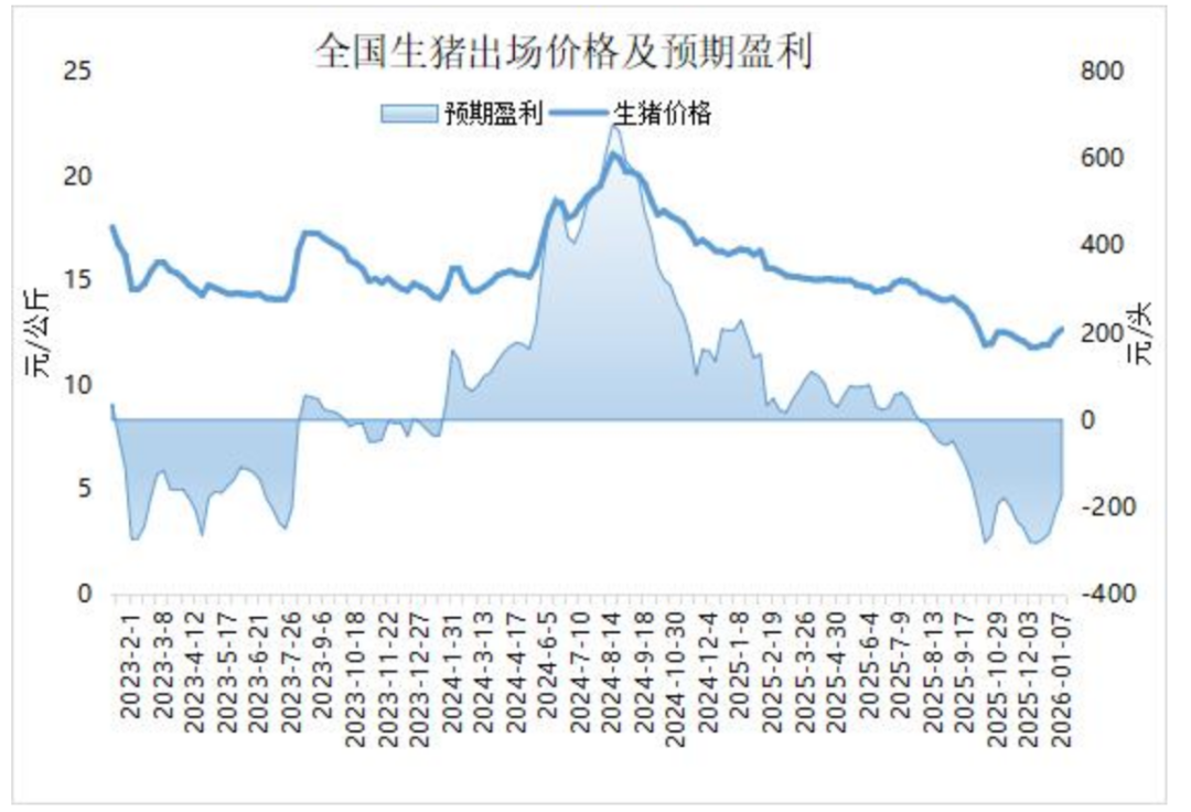 财联社鹰眼讯,月初养殖端整体出栏压力减弱,市场供应有所收紧,供应减量支撑猪价继续回升,养殖行业亏损幅度进一步收窄。国家发改委价格监测中心披露的数据显示,2026年1月第2周,全国生猪出场价格为12.67元/公斤,较前期攀升2.10%,刷新3个月高点。目前价格及成本推算,未来仔猪育肥模式的生猪养殖头均亏损174.24元。
