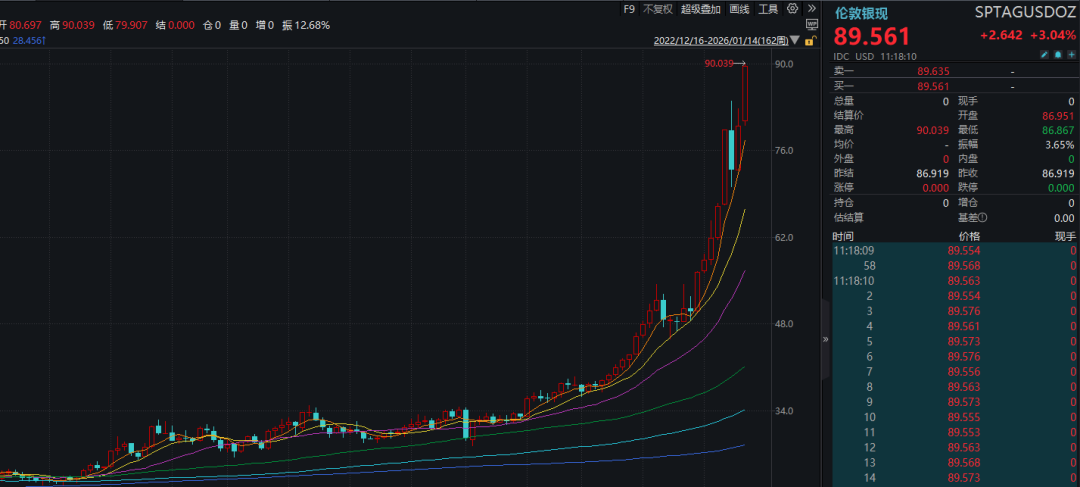 白银价格史上首次突破90美元